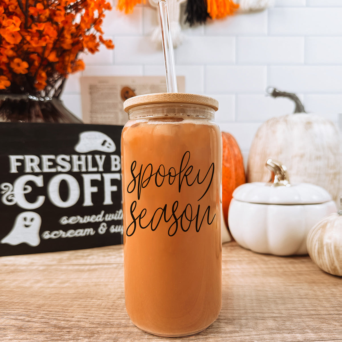 Introducing the tumbler that's more haunted than your coffee addiction! This 20oz glass vessel isn't just for drinks - it's your personal proclamation that spooky season is YOUR season (and yes, that includes Monday mornings).
